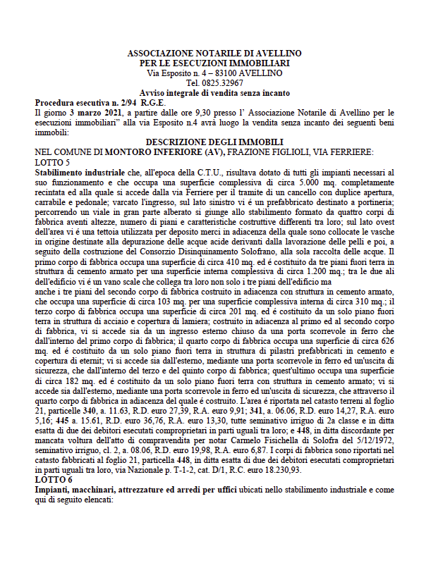 | stabilimento industriale / beni mobili | Montoro Inferiore | 03/03/2021 | |||||||||||||||||||||||||||||||||||||||||||||||