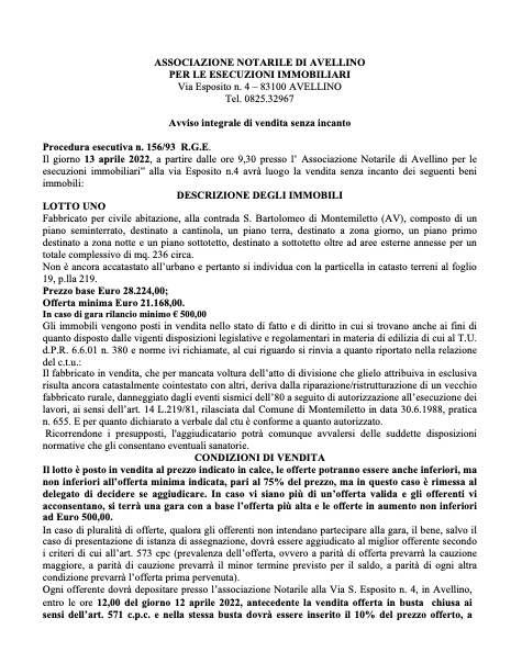 | Fabbricato per civile abitazione | Montemiletto | 13/04/2022 | |||||||||||||||||||||||||||||||||||||||||||||||