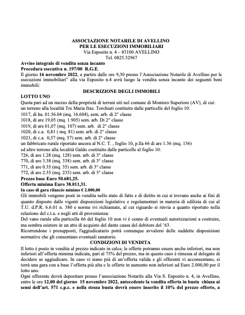 | Quota parte di terreni | Montoro Superiore | 16/11/2022 | |||||||||||||||||||||||||||||||||||||||||||||||